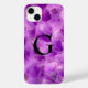 Phone case in a gem stone slab pattern, with a black onyx look monogram - deep purple amethyst in a lighter orchid matrix stone