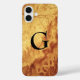 Phone case in a gem stone slab pattern, with a black onyx look monogram - Tiger eye in bands of rich mustard gold and warm brown