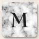 Coaster in a gem stone slab pattern - classic grey / grey and white marble, with a delicate webbed pattern, and a customizable monogram, in a Deco font, with the look of black onyx