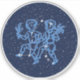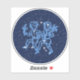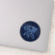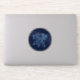 Sticker featuring the symbol for Gemini in soft silver blue, overlaid with the stars of the constellation, against a starry sky background graded from deep midnight blue to black