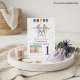 An impressionist painting of the Gemini Zodiac sign in purple, blue and autumn colours and shades with gold nuggets. They are cute party balloons spelling “Happy” on the top and gold confetti randomly displayed on the card. Customize the front card with your picture.