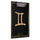 Stylized hammered gold Gemini the Twins astrology zodiac birthday symbol in a hand drawn gold double line frame. Gemini text in a gold script can be customized to add a personal touch.