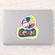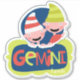 Here's a cute sticker that proudly proclaims your status as a Gemini! It features the twins with striped caps peeking over a banner with stylized text below in red and lime green that says "Gemini". Your name is in smaller text in white at the bottom right. If you prefer, you may easily remove the name by clearing the field. *Clip art used in this design is copyrighted by Encore Software, Inc., which permits use to its licensors. All rights reserved.