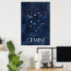 Gemini star sign poster with name, star sign zodiac art piece, with the stars of the Gemini constellation - The poster can be printed up to giant size (24x36inches) without loosing quality. This artwork has beautiful subtle detail within the indigo blue background, and of course the stars themselves.
