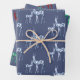Hand-painted watercolor crystal reindeer in three gemstone varieties - ruby, emerald & blue topaz - decorate this uniquely stylish Christmas holiday wrapping paper in county blue