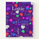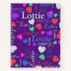 Cute originally designed text name personalized notebook. Diamond, emerald green, sapphire blue and pink, amethyst purple and red ruby with typographical text pattern on both sides. Customize with your own short name, currently reads Lottie. Other names available or contact me for longer name requests. Original watercolor gemstone art and design by Sarah Trett for www.mylittleeden.com