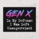 Gen X - In My Defence I Was Left Unsupervised. This funny quote retro Gen X accessory is a great gift for Generation X women, men, a husband, wife, boyfriend, girlfriend, father, mother, dad or mom who grew up as latchkey kids in the 1980s or 1990s. This vintage design is perfect for Gen Xers who had a feral upbringing, remember the 80s and 90s, and who have nostalgia for icons, movies, music, bands, and tv shows from the eighties and nineties era.