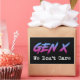 Gen X - We Don't Care. This funny retro Gen X accessory is a great gift for a Generation X woman, man, husband, wife, boyfriend, girlfriend, father, mother, dad or mom who grew up in the 1970s, 1980s or 1990s. This vintage design is perfect for Gen Xers who remember the 80s and 90s, and who have nostalgia for icons, movies, music, bands, and tv shows from the eighties and nineties era.