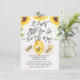 Modern watercolor bee themed baby shower invitation featuring a honeycomb, bees and sunflowers. Ideal for someone looking for a watercolor bee themed baby shower invitation.