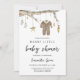 Celebrate the joy of a winter arrival with our Gender Neutral Merry Little Baby Shower Invitation. Featuring a minimalist design with a tree branch, a brown baby jumpsuit, white socks, and twinkling stars, this invite is adorned with elegant diamond-shaped Christmas decorations. Perfect for a stylish and heartwarming celebration. BBS928