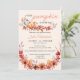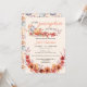 The pumpkin fall-themed baby shower invitations feature a delicate watercolor design with autumn leaves and flowers in warm hues of orange, red, and pink. The invitations showcase beautifully hand-painted pumpkins surrounded by vibrant leaves and blossoms, set against a soft, creamy background. Elegant script fonts add a touch of sophistication, while subtle watercolor washes provide a charming, rustic feel. The invitation is thoughtfully designed to create a warm, inviting setting perfect for celebrating the upcoming arrival.