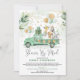 Adorable "baby shower by mail" invitation featuring elegant watercolor greenery, adorable jungle animals and festive green and gold balloons.