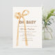 Bow baby shower theme, modern baby shower theme, boy baby shower theme, baby shower invitation, designed with cute minimal neutral watercolor bow and typography "Oh Baby" in beige background colour. Matching items in our store Urban Aglow Design.