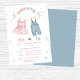 Crafted with a delightful design featuring cute baby clothes in shades of blue and pink, our invitation captures the essence of the big reveal moment. The question mark symbolizing the unknown gender adds an element of suspense, building excitement among your guests.