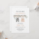 He or She? What will baby be? A cute gender reveal invitation featuring baby boy and baby girl clothes hanging on tree branch.