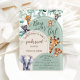 This Sage Green Boho Chic gender reveal invite, adorned with Elegant Eucalyptus Leaves, featuring Cute Jungle Animals: Lion, Elephant, Zebra, Giraffe, Tiger, and Funny Monkey. This design is perfect for a Gender-Neutral Baby Shower. Don't forget to explore the full collection