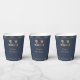 These gender reveal paper cups feature a classic navy plaid design with adorable teddy bear artwork, perfect for preppy and traditional baby shower celebrations. Ideal for drinks, dessert tables, or party stations.