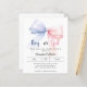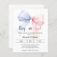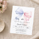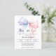 White background, decorated with a large blue and pink bow. For a gender reveal. Personalize and add names and party details.