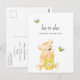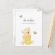 Adorable design featuring a cute teddy bear with a barrel of honey watching two cute honey bees buzzing around. On reverse side are our invitation templates, greenery and yellow flowers.