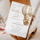 We can bearly wait! Teddy-Bear-themed Gender Reveal invitation featuring a watercolor teddy bear flying high in a brown air balloon. Customize with your information for the mommy to be. Click "click to customize further" to change the font style, size or colour.
