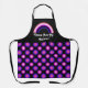 Medium-sized apron with an image of a genderfluidity pride flag and a rainbow, and repeating seamless flower pattern; pink, white, black, and purple design on a black background, a dark variant, with a customizable text template for your own name or message