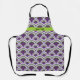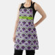 Medium-sized apron with a seamless pattern with rainbows in the colours of the genderqueer pride flag; purple, white, and green on a purple background, with a customizable text template for your own name or message
