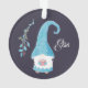 Un joli ornement de Noël rond avec des illustrations d'un gnome suédois bleu buvant du cacao chaud pour se garder au chaud. Personnalisez avec un nom. © ArianeC Illustrations
