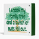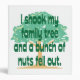 A graphic of a big tree with caption I shook my family tree and a bunch of nuts fell out. Fun notebook for a genealogist to store research or use it as a family photo album.
