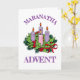 Front: An illustration of an Advent wreath made of evergreens and holly with all four candles lit between the arched word Maranatha ("Come, Lord") and the horizontal word Advent--both in large capital letters. Inside: A wish for hope, peace, joy, and love (the themes of Advent's four weeks) and a Biblical passage about preparing the way of the Lord from the Gospel of St. Matthew (Matthew 3:1-3). + Image Credits: Black and white Advent wreath AI-generated by mimicoloringdesigns via Pixabay, modified and colorized by Saints_Aplenty; bow by Elionas also via Pixabay.