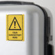 Triangle shaped yellow warning sign with exclamation mark. Custom background colour. Custom text.