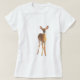 A delicate illustrated fawn stands gracefully against a deep black background, highlighting its soft features and calm expression. Warm brown and golden tones flow through the artwork, emphasizing gentle lines, slender legs, and wide, attentive eyes. The contrast creates a serene yet striking visual presence, blending innocence, nature, and minimalist elegance into one captivating image.