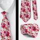A vibrant necktie featuring a watercolor floral design of bright blush pink flowers and magenta roses. The flowers are delicately painted in soft, flowing brushstrokes, blending seamlessly into each other. The blush pink tones are gentle and elegant, while the magenta roses bring a bold and striking contrast, creating a beautiful balance. The watercolor technique adds a sense of fluidity and lightness to the design, giving the neck tie a refined, artistic feel. The background is a soft, subtle wash of complementary hues, allowing the flowers to stand out as the focal point of the tie. Perfect for adding a touch of floral elegance and sophistication to any outfit. Great for a blush pink and magenta coloured themed wedding groomsmen neck ties.