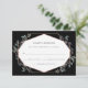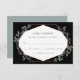 Cette carte de réponse de mariage élégante et tendance présente une forme géométrique en or faux rose entourée de belles branches verdoyantes, sur un arrière - plan noir foncé.