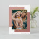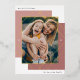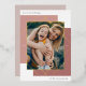 A modern and eyecatching holiday photo card design featuring a vertical or portrait-oriented photo framed by overlapping blocks of pink clay and spice, and overlaid with gold foil diamond shapes for a chic geometric colorblock look. Personalize with your custom holiday greeting (shown with "Merriest Christmas,"), your family name, and the year.