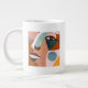 I was looking for a cheerful, vibrantly coloured, fun, extra large , MCM designed mug for my first coffee of the day. This fits the bill! The print is purrfect and the colours are SO vibrant. The design definitely gives a true MCM vibe. The placement of the art is the only negative for me. I would prefer the main image be on opposite sides of the mug, rather than placed so close together, and not able to be seen by the drinker (me!) or the person opposite me (if there is one :-).