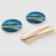 Geode Agate Gemstone Blue and Gold Hand Fan