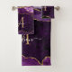 Moderne Elegant Agate Geode Gemstone Marbre Classique Violet Violet Or Monogramme Nom Serviette de bain Ensemble