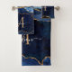 Géode moderne Elégant Agate Géode Marbre Marine Bleu Or Monogramme Nom du script Ensemble de serviettes de bain