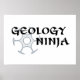 Géologie Ninja - affiche blanche avec lettrage noir et lance marteau de pierre étoile.