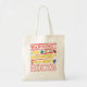 These bags were super cute (I purchased 3). The material is more of a canvas look & feel. The colour of the bag is slightly off white, but the letters look exactly as pictured. I took 3 photos in different lighting. Would recommend! I liked how there was an option to choose the font and colour of the name. The words are legible and the colours are exactly as pictured.