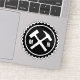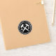 This "bottle cap" style badge features a geologist's favourite rock-bashing implements: a rock hammer and hand sledge! The perfect tools for beating rock samples into submission!