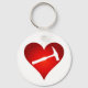 A valentine's keychain with a geology twist: this red heart has a white rock hammer shape inside.