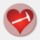 A heart magnet with a geology twist: this red heart has a white rock hammer shape inside.