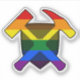 This vinyl decal features the classic crossed rock pick and sledge hammer, decorated with the LGBT rainbow flag! Put this sticker on your laptop!