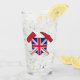 This drink glass features the classic geology rock hammer logo, decorated like the Union Flag of the United Kingdom. Perfect for celebrating a successful day of science!