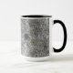 Delicate photo of grey Granite rock texture with decorative moss details. The photo covers the major part of this mug. Opposite of the handle, there is a semitransparent vertical name banner. Banner is black, and text is light grey to light brown.