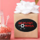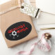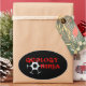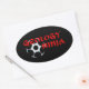 Geology Ninja - science humour - oval black sticker with red lettering and rock hammer throwing star.