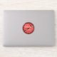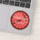 This badge-style vinyl decal features a geologist's rock hammer in dark red in front of a reddish sunburst design. Overlying that is the customizable phrase "Geology Rocks!" in an light pink, art deco, industrial-style typeface. The message and font style can be customized however you wish. Personalize it with your name! Have it say "Melissa Rocks!" or "Hammer This!" or whatever you like! Make this your own customized geology badge!