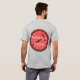 This badge-style geology logo features a rock hammer in dark red in front of a reddish sunburst design. On the front "pocket" area, you just see the logo, but on the back is the customizable phrase "Geology Rocks!" in an light pink, art deco, industrial-style typeface. The message and font style can be customized however you wish. Personalize it with your name! Have it say "Amanda Rocks!" or "Hammer This!" or whatever you like! Make this your own customized geology badge!