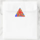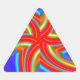 An attractive geometric pattern or design predominately in shades of red and blue, but also with yellow, cyan, purple and green.